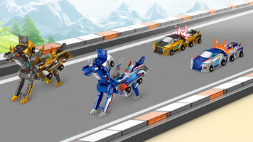 Built-in magnets in each car face ensure a secure snap when they come together, triggering the automatic transformation into a dinosaur or unicorn.